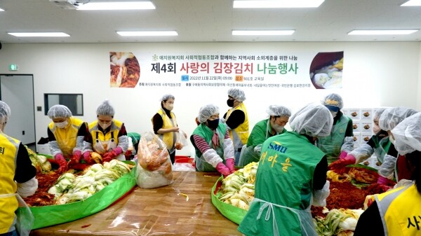 고도훈 애지원복지회 이사장은 “바쁜 와중에도 소외계층의 어려움을 공감하고 이웃사랑을 실천해주신 지역사회보장협의체 위원님들과 봉사자들에게 감사하다”며 “정성껏 담근 김장 김치가 어려운 분들이 올겨울을 나는 데 도움이 되길 바란다”고 말했다.