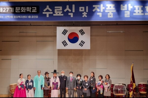 백경현 구리시장은 “구리문화학교 제27기 수료를 축하한다 문화학교에서 많은 것을 배우고 수료하신 여러분들이 구리시를 문화가 살아 숨 쉬시고 꽃 피울 수 있는 도시로 만들어 주시기를 바란다”고 전했다.
