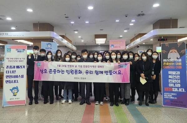 민원과 직원들은 행정용어 순화 친절 응대와 경청 봉사의 정신으로 시민과 소통 신속·정확·공정한 민원처리 등을 통해 부천시민에게 항상 친절한 행정서비스를 제공할 것을 다짐했다.