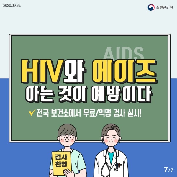 보건소에서 연중 무료로 익명검사가 가능하며 감염 초기에는 음성으로 나오는 기간이 있어 감염 의심일 기준 12주 후에 검사를 받는 것이 정확하다.