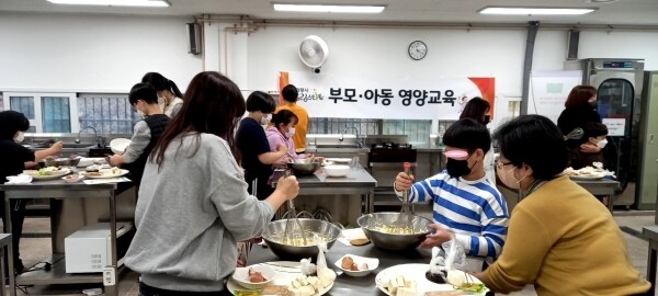 취약계층 아동의 올바른 식습관과 건강한 성장을 위해 ‘찾아가는 밥상머리 영양교육’프로그램의 하나로 실시한 이번 영양교육은 13가족 엄마와 아동이 함께 참가해 교육과 요리를 체험하는 즐거운 시간을 가졌다.