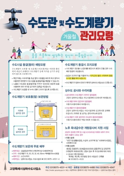 고양시는 수도 계량기 보호통에 영하의 기온에도 견딜 수 있는 보온재를 설치하도록 시민들에게 무료로 보온재를 나눠주고 있다.