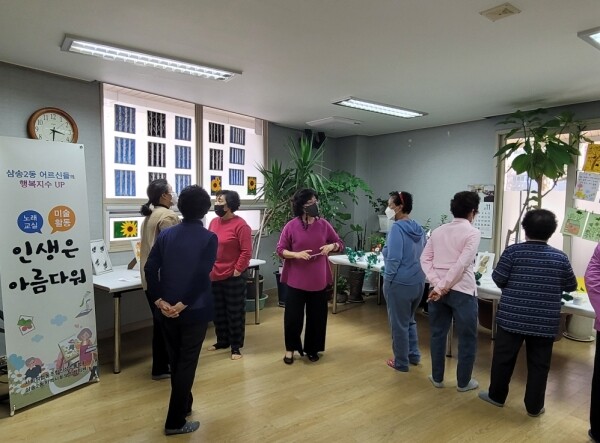 전시에 참여한 한 어르신은 “미술을 어렵다고 생각했는데 선생님이 차근차근 가르쳐줘서 너무 좋았고 잘 못해도 치매예방에 좋은 것 같아서 열심히 했는데 이렇게 전시된 것을 보니 뿌듯하다”고 소감을 밝혔다.