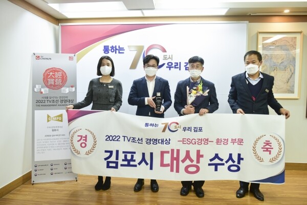 김포시는 법정보호종 조류 보전보호대책 수립 및 하동천 생태탐방로 활성화 추진 등 자연 생태계 보호를 통한 자연친화적 생태도시 조성 석면슬레이트 철거 및 피해자 구제 추진을 통한 대기환경 개선으로 안전한 생활환경 제공 수질오염총량관리로 방류수질 개선, 어린이활동공간 환경안전관리 추진 등 쾌적한 주거환경 조성 친환경 자동차 확대 보급 및 노후 경유차 운행제한 관리 등 탄소중립 및 기후변화 적응기반 구축 친환경자원회수센터 건립 등 매년 발생되는 폐기물 효율적 처리 미세먼지 차단숲 조성과 한강정원 조성사업 등을 통해 지속적으로 생태녹지 공간 확대 계양천·나진포천 선형공원 조성 등 친수공간 및 산책로 제공으로 시민들의 여가생활 증진과 시민이 안전한 하천 환경 조성으로 ESG 경영 철학을 반영한 친환경 활동을 꾸준히 수행하고 있다는 점에서 높은 평가 받아 수상의 영예를 안았다.