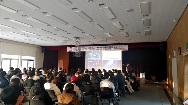 이날 강연은 유튜브 ‘안될과학’채널의 크리에이터이자 과학커뮤니케이터‘궤도’를 초청해 과학 문화의 대중화와 일상 속 다양한 과학 이야기를 주제로 진행됐다.