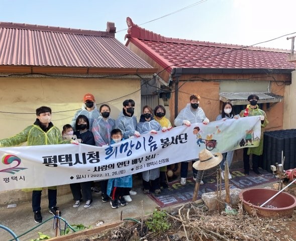 이날 전달식을 위해 평택시청 희망이음봉사단 회원들과 가족들은 휴일임에도 13명이 모여 연탄 500장을 직접 어르신 댁에 배부 및 주변 환경정비 활동도 진행했다.