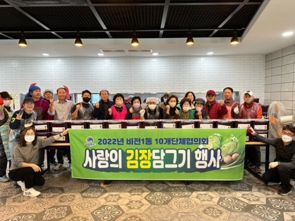 또한, 이연준 비전1동장은 “추워진 날씨에도 어려운 이웃을 위해 기꺼이 봉사에 참여해주신 회원들께 감사드리며 모두의 정성이 담긴 김치를 꼭 필요한 이웃에게 잘 전달해드리겠다”고 말했다.