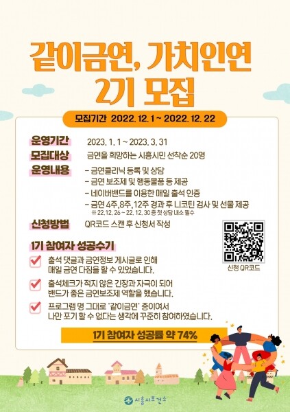 이어 “건강에 대한 민감도 상승으로 가정을 이룬 30~50대의 금연 욕구와 의지가 가장 강한 만큼, 새해맞이 건강생활 실천을 위한 ‘같이금연, 가치인연’2기를 모집하게 됐다”는 취지를 전했다.