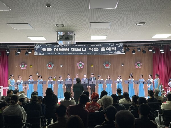이번 음악회는 배곧1동 주민자치센터 문화강좌 프로그램 수강생 및 배곧 해누리 합창단원이 함께 만든 것으로 지난 8월 주민자치센터가 재개된 후 처음 진행된 작품발표회다.