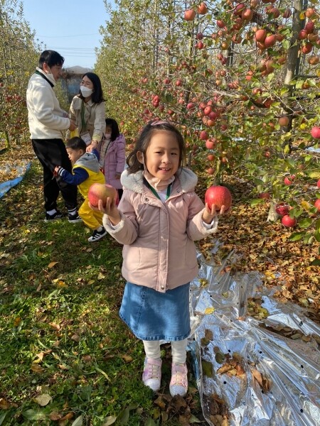 장성에서 기른 사과를 수확하거나 직접 인절미를 만들어 먹는 등 ‘오감 만족’ 체험이 이어졌다.