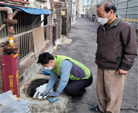동파를 방지하기 위해서 수도관 및 수도계량기에 대한 보온작업도 진행한다.