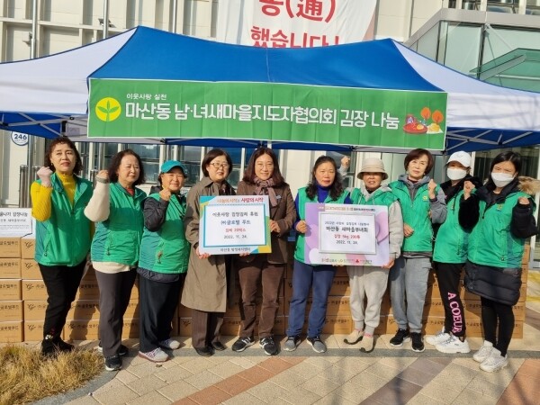 새마을부녀회의 김장김치 기탁에 진혜경 마산동장은 “부녀회에서 매년 김장김치 나눔행사를 통해 관내 저소득층 가구를 도와주시는 것에 대단히 감사하다”며 “요즘 금리인상 등으로 물가가 많이 올라 저소득가구는 더욱 어려움이 많다.