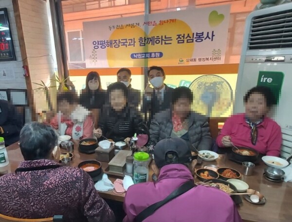 이번 점심 나눔행사는 낙원교회와 함께 양평해장국에서 지난 4월부터 매월 1회 지속적으로 진행하는 것으로 낙원교회와 양평해장국은 관내 취약계층을 위한 이웃돕기 활동을 꾸준히 이어가고 있다.