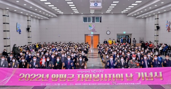 매년 12월 5일인 ‘자원봉사자의 날’ 전후로 진행되는 자원봉사자의 날 기념식은 올해 양평군 자원봉사자 200여명을 초청해 진행됐다.