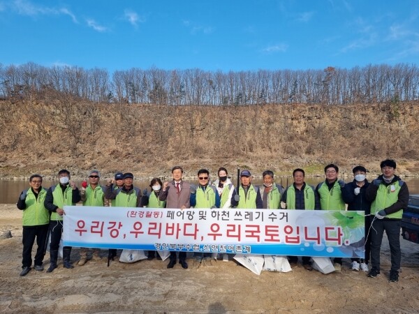 이날 어촌계원 10여명과 경기인천북부수협 직원 5명은 한탄강 어린이교통랜드 앞 강변에서부터 고능리 세월교까지 약 1km에 이르는 구간에서 굴삭기 등 장비를 동원해 하천 대형 폐기물, 폐어망 등 수거 및 환경 보호 캠페인을 실시했다.