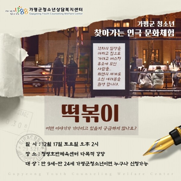 신청 방법은 홈페이지에서 신청서를 작성하거나 가평군청소년상담복지센터로 문의하면 된다.
