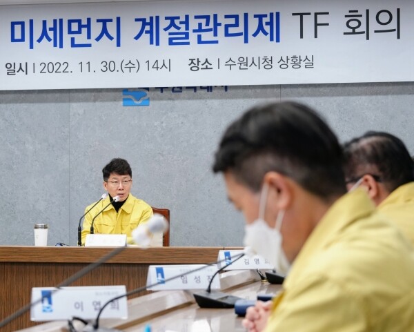 수원시는 11월 30일 시청 상황실에서 황인국 제2부시장 주재로 ‘계절관리제 TF’ 회의를 열고 미세먼지 관리 대책의 현장 실행력을 높일 방안을 논의했다.