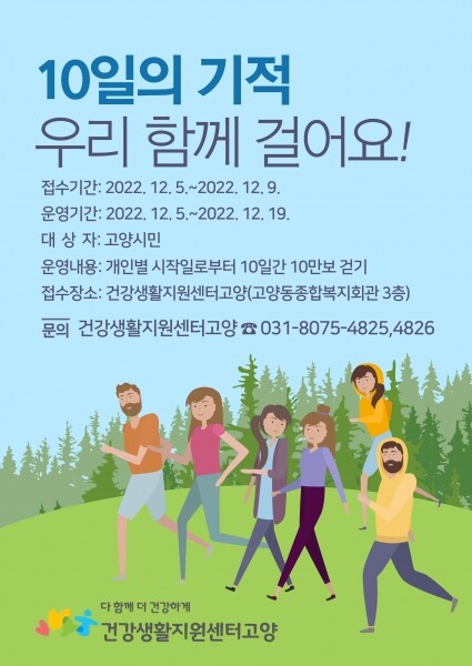 덕양구보건소 관계자는 “일상생활 속 걷기 습관 기르기 프로그램 참여로 겨울철 실외 활동량 감소에 대비 건강생활실천 증진을 기대한다 많은 지역 주민의 참여를 부탁드린다”고 말했다.
