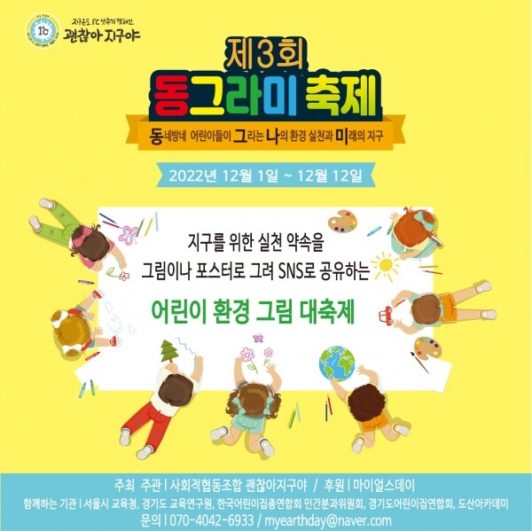 동그라미 축제는 “동네방네 어린이들이 그리는 나의 환경 실천과 미래의 지구”라는 슬로건으로 폐박스에 환경을 위한 나의 실천과 약속을 그림으로 그리는 온라인 그림 공모전이다.