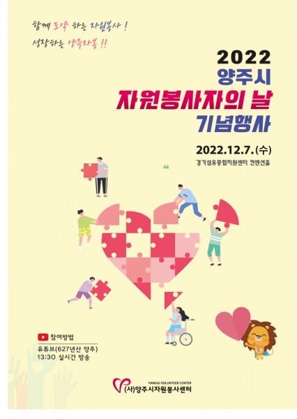 이번 행사는 자원봉사자의 날을 맞아 한 해 동안 나눔을 실천한 양주시 자원봉사자들을 위해 마련됐으며 유튜브 채널 ‘627년 양주’에서 실시간으로 중계된다.