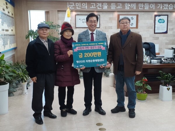 전진선 군수는 “깨끗한 마을 만들기에 앞장서며 동절기 사랑의 연탄 모으기 운동에 동참해주신 병산2리 이장님을 비롯한 주민들께 감사드린다”며 “특히 매주 재활용품을 판매해 얻은 수익금이라 더 의미가 있는 것 같고 기탁하신 성금은 취약계층이 따뜻하게 겨울을 보낼 수 있도록 잘 사용하겠다”고 전했다.