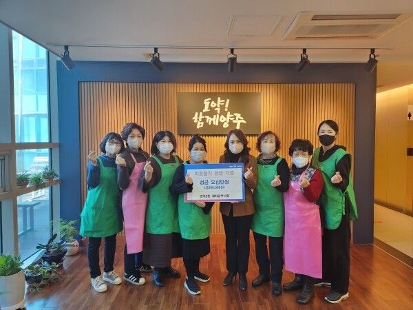 한순옥 부녀회장은 “연말연시를 맞아 어려운 이웃을 돕기 위한 따뜻한 마음과 담아 기부에 동참하게 됐다”며 “앞으로도 도움이 필요한 이웃들을 위해 봉사하는 새마을부녀회가 되도록 노력하겠다”고 말했다.