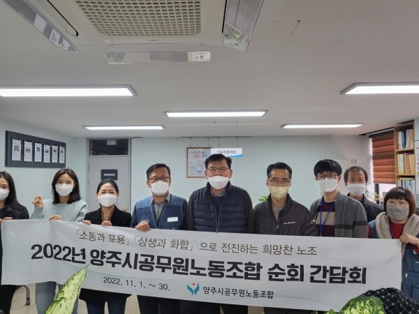 한편 양주시공무원노동조합은 현장의 목소리를 반영, 집행부와 노사협의를 통해 각종 정책애로와 조합원 고충을 조속히 해소할 수 있도록 노력하는 한편 공무원 처우와 관련한 공무원 보수, 복무 및 각종수당 등 불합리한 제도 개선을 위해 대한민국공무원노동조합총연맹, 전국시군구공무원노동조합연맹 등 상급단체와 긴밀히 연대해 지속적으로 투쟁할 계획이라고 전했다.