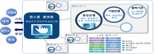 구체적으로는 부처별로 관리되던 기존 자원은행을 구조조정해 자원의 효율적인 통합 관리와 품질 제고를 위해 범부처 14대 소재 클러스터로 재편했다.