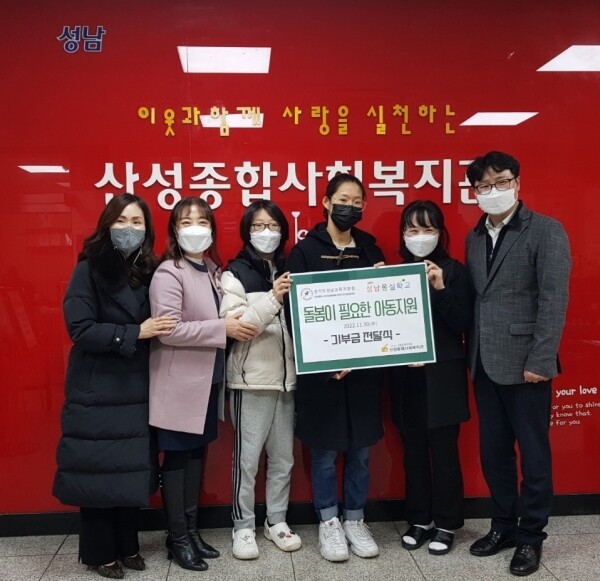 돌봄이 필요한 아동 지원 위해 산성종합사회복지관에 기부금과 물품 전달