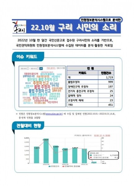 구리시, 민원 빅데이터 동향 ‘구리 시민의 소리’제작