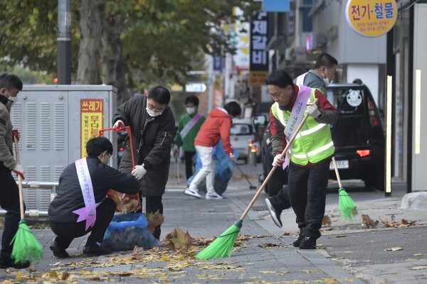 이들은 거리에서 낙엽과 쓰레기를 청소하고 주민 불편 해소와 쾌적한 도시 미관을 위해 취약 지역에 버려진 무단 투기물을 수거한다.
