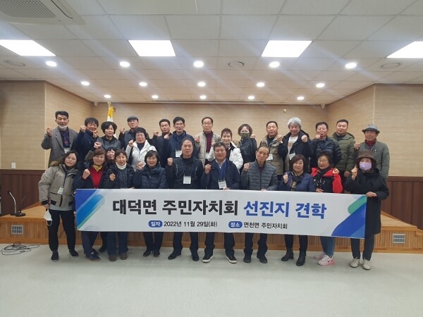 유계형 대덕면 주민자치회장은 “이번 벤치마킹은 주민자치회 위원들 간 상호 교류, 소통하고 더 나아가 서로 협업하는 계기가 됐다 또한 타 지역의 우수 사례를 청취해 주민자치회의 도약과 발전을 도모할 수 있는 의미 있는 시간이었다”고 말했다.