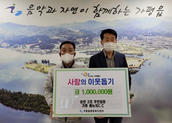 가평읍 승안2리 마을, 가평 베뉴지 C.C 사랑의 이웃돕기 성금 100만원 기탁