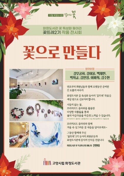 화정도서관 꽃 특성화 동아리 ‘꽃뜨레’는 이번 전시회를 통해 크리스마스 리스 등 연말 느낌이 물씬 나는 작품들을 선보인다.