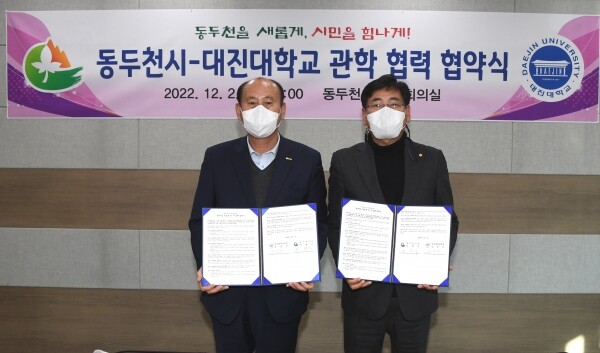 박형덕 동두천시장과 임영문 대진대학교 총장은 협약식에서 관학 협력을 통해 인적·물적 자원과 정보를 공유해 상호 발전에 기여하기로 약속했다.