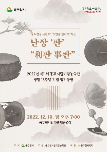 [뉴스써치] 동두천시는 오는 19일 월요일 저녁 7시 시민회관 공연장에서 ‘제11회 동두천시립이담농악단 정기연주회’를 개최한다.