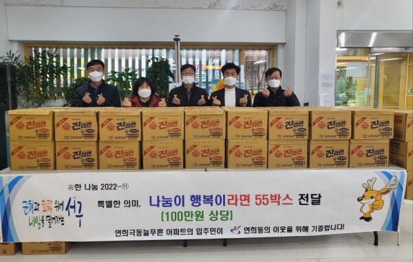 이에 윤명훈 연희동장은 “매년 물품 후원을 통해 이웃에 지속적인 관심과 따뜻한 사랑을 전하는 연희 극동늘푸른아파트 주민들께 고마움을 전한다”며 “주민들의 소중한 마음이 도움이 필요한 분들에게 잘 전달되도록 최선을 다하겠다”고 말했다.