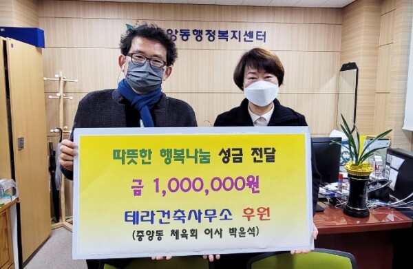 과천시 중앙동, 테라건축사무소로부터 100만원 기부금 전달 받아