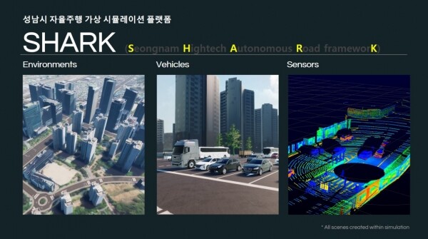 2021년부터 성남시는 자율주행 차량을 운행하지 않고도 가상의 환경에서 다양한 자율주행 테스트와 성능평가에 활용할 수 있는 시뮬레이션 플랫폼 ‘샤크’를 지원해왔으며 올해도 관내 12개 기업과 기관, 학교에 지원하고 있다.