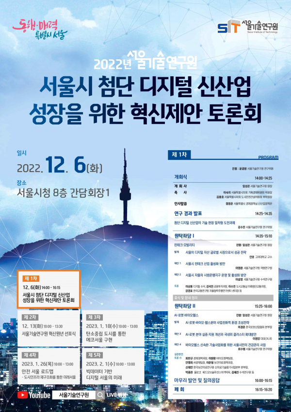 자세한 내용은 서울기술연구원 유튜브 채널을 통해 시민 누구나 확인 가능하며 실시간 채팅을 통해 의견을 남길 수도 있다.