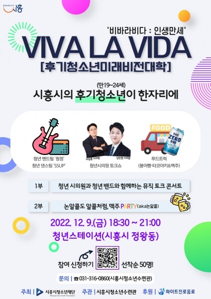 행사의 주요 내용을 살펴보면, 1부에서는 시흥시 청년 시의원인 ‘김진영 시의원’, ‘이상훈 시의원’이 참석해 자신의 10대와 현재 이야기, 후기청소년이 시흥시에 바라는 점을 토대로 답변하는 형식의 토크 콘서트가 진행된다.