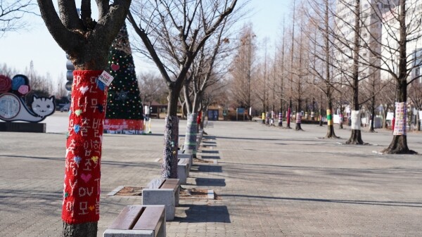 일산문화광장 일대 300여 그루 나무 뜨개옷 입어