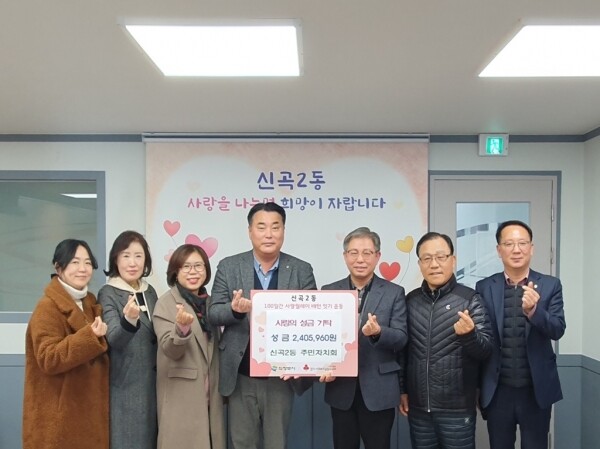 이날 기탁된 성금은 신곡2동 주민자치회 위원들이 모은 회비와 올해 공모사업에 선정되어 받은 상금 80만원으로 마련됐으며 기탁된 성금은 사회복지공동모금회를 통해 관내 복지사각지대 발굴 등 취약계층 지원에 사용될 예정이다.