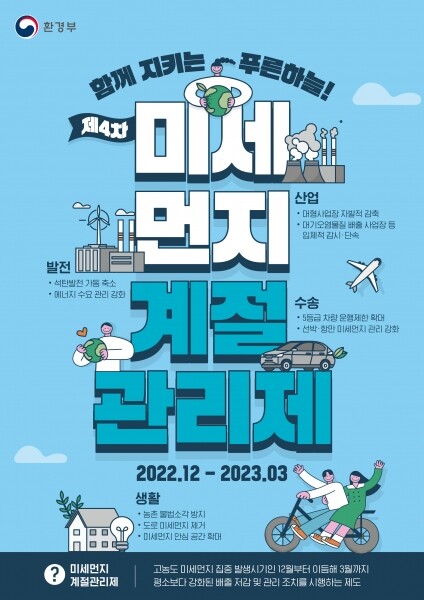 미세먼지 계절 관리제란 시민 건강 보호를 위해 평상시보다 한층 강화된 미세먼지 저감 정책을 시행하는 집중 관리 대책으로 수송·산업·생활·건강 보호· 정보제공 총 5개 분야 16개 이행과제를 집중적으로 추진한다.