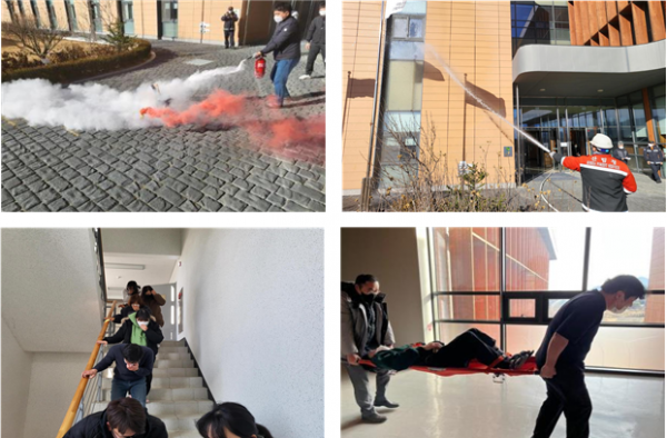이번 훈련은 화재 발생 시나리오에 따라 실제 상황처럼 화재신고 및 대피 유도, 중요서류 반출, 인명구조와 화재진압 등의 순서로 진행됐다.