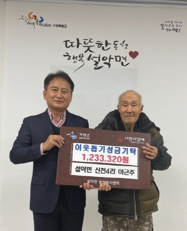 이에 이범주 설악면장은 “매년 잊지않고 이맘때쯤이면 성금을 기탁해주시는 어르신께 깊이 감사드린다 어르신의 따뜻한 마음을 담아 온정이 넘치는 설악면이 될 수 있도록 소중한 곳에 잘 전달하겠다”고 전했다.