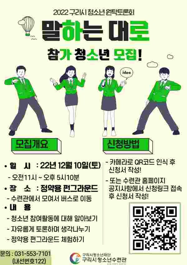 구리시청소년수련관, ‘2022 청소년 원탁토론회’참가자 모집