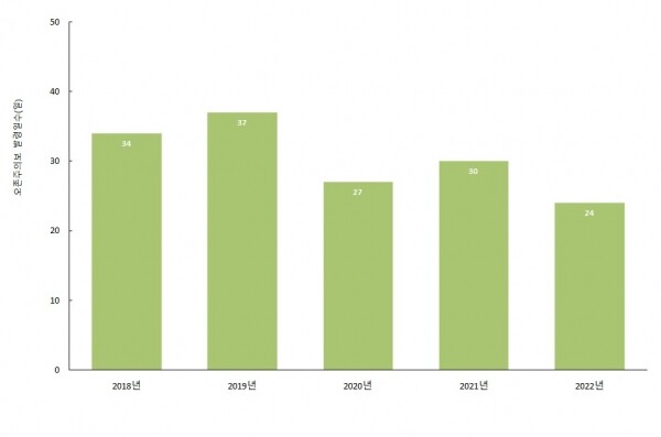 그동안 2018년 34일 2019년 37일 2020년 27일 2021년 30일이 발령됐는데 올해는 최근 5년 이래 발령 일수가 가장 적었다.