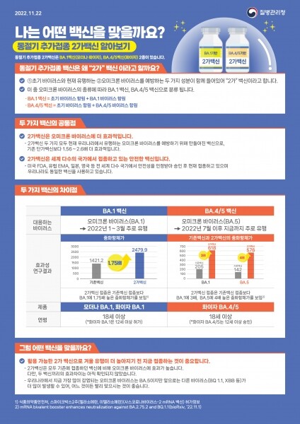 이번 접종에는 오미크론 변이에 대응하는 mRNA 2가 백신 3종이 활용된다.
