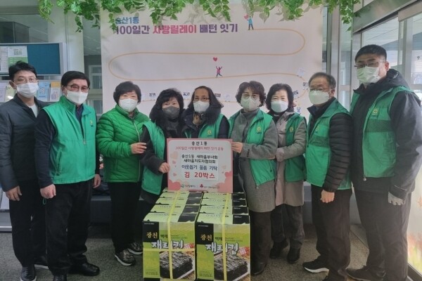 송산1동 새마을지도자협의회는 매주 화요일마다 관내 환경정화 활동을 실시하고 있으며 이번 물품 기탁으로 ‘100일간 사랑릴레이 배턴잇기’ 캠페인에 동참했다.